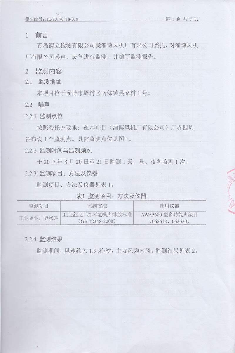 淄博風(fēng)機(jī)廠監(jiān)測報告公示
